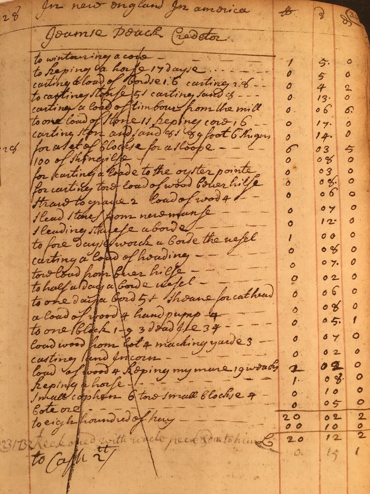 Jeames Douck CeditorWheelock, who was born in 1711, would have been a mere 15 years old in 1726. The account book indicates that Wheelock was in New Haven, Connecticut, during this time period. This places him away from home, which would have been his father’s farm in Windham, Connecticut, three years before he is said to have enrolled at Yale. New Haven, which is about 68 miles from Windham, would have been a long day’s ride, or more, by horse, so it is unlikely that Wheelock was commuting on a frequent basis.